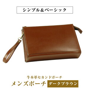 シンプル&ベーシックでありながら実用的でもある、日本製の本革メンズポーチ シンプル&ベーシックな牛本革セカンドポーチ【メンズポーチ】(ダークブラウン) ay10087
