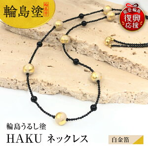 返 礼 品 詳 細 輪島塗職人が、天然漆と金沢箔を用いて、華やかなネックレスに仕立てました。 黒漆は、「漆黒」と表現されるほど深い黒です。白漆は、漆の特性上発色が難しく工房にて淡く調合、金箔の金色と優雅なハーモニーを醸し出し