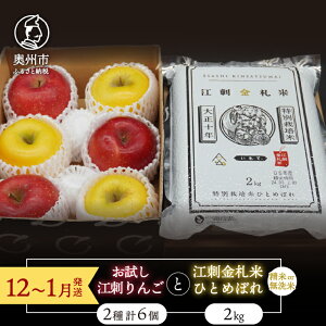 【岩手県奥州市】【精米/無洗米】 お試し用江刺りんご 「サンふじ&シナノゴールド」各3個と 江刺金札米 ひとめぼれ2kgセット 【12〜1月発送】 林檎 フルーツ 果物 米 セット...