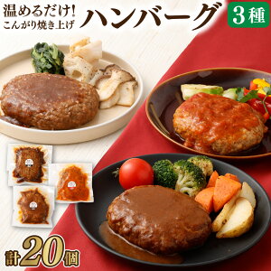【ふるさと納税】温めるだけ!こんがり焼き上げ ハンバーグ 20個セット 食べ比べ 3種(焼肉・デミグラス・トマト)ソース付き オリジナルソース 手作りハンバーグ 惣菜 湯煎 簡単調...
