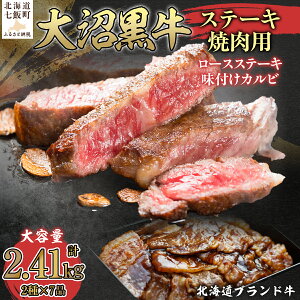 【ふるさと納税】【北海道ブランド牛】大容量 大沼黒牛ステーキ、焼き肉用(ロースステーキ270g×3枚、味付けカルビ400g×4P) 牛肉 大沼黒牛 ステーキ 焼肉 焼き肉 BBQ ...