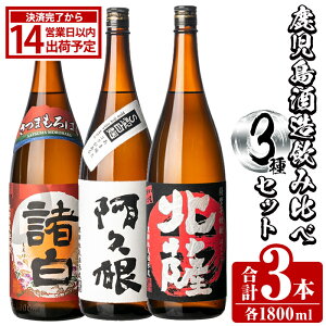 【ふるさと納税】鹿児島酒造飲み比べセット「北薩・諸白・阿久根」(合計3本・各1800ml)国産 詰め合わせ 芋 本格焼酎 芋焼酎 お酒 アルコール 父の日 贈答用 ギフト【鹿児島酒...