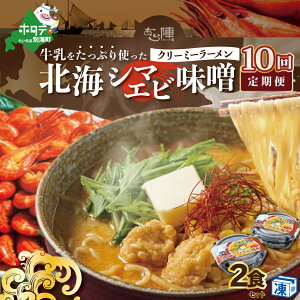 【北海道別海町】ランキング第3位獲得!【毎月定期便】牛乳をたっぷり使ったクリーミーラーメン(北海シマエビ味噌)×2食セット ×10カ月【be035-0939-100-10】(あら陣...