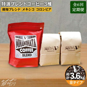 【ふるさと納税】【全6回定期便】焙煎したての深いコク 特選ブレンドコーヒー 3種セット【豆】計600g <自家焙煎珈琲 猫屋カフェ>那珂川市 | 定期便 ブレンド コーヒー 珈琲 ...