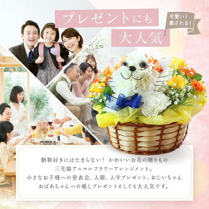 【ふるさと納税】アニマルフラワーアレンジメント 三毛猫 | 花 カーネーション ギフト お祝い ねこ フラワー 生花 プレゼント 可愛い インテリア 飛騨高山 下出生花店 BB00...