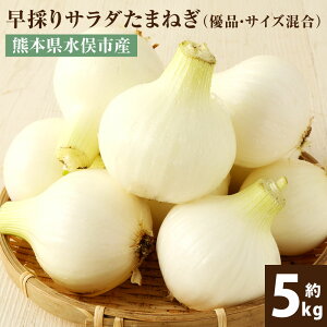 【ふるさと納税】1年に1度だけ!甘くて柔らかい!早採りサラダ玉ねぎ 約5kg 優品 サイズ混合 M〜2Lサイズ 玉ねぎ タマネギ 玉葱 サラたま 春 新たまねぎ 国産 熊本県 水俣...