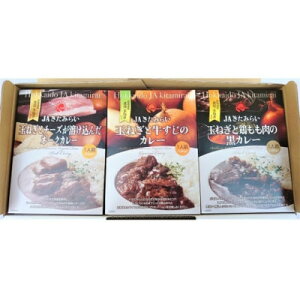 北海道の美味しさがギュッと詰まったカレーです。JAきたみらい産の玉葱を使用してます。 玉ねぎの旨味がとろけた3種の贅沢カレー 大満足セット