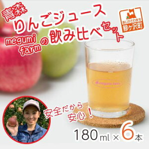 【青森県鰺ヶ沢町】【12月中旬より順次発送】 数量限定 りんごジュース 飲み比べ 180ml×6本 ジュース セット 青森県 鰺ヶ沢町産 megumi farm サンふじ 王林 サ...