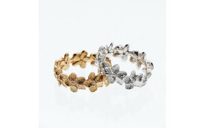 エレガントで可愛らしいフルエタニティタイプのハワイアンジュエリープルメリアの真ん中にダイヤモンドが留めてあり一枚一枚の花びらを丁寧に形作った匠の一品です。ぐるりと一周すべてが花びらで覆われているフルエタニティタイプで