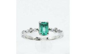 0.5カラットの高品質天然エメラルドを使用し、色のりと透明感に優れたザンビア産ならではの美しい輝きを楽しめる一品。 エメラルドの両脇にはダイヤモンド6石がキラキラと輝き、華やかさを引き立てます。 気品あふれる洗練されたデザイ