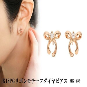 上品な輝きを耳元に添える、K18ピンクゴールドリボンモチーフダイヤピアス。 可憐なリボンデザインに、合計0.02ctのダイヤモンドがさりげなく煌めき、女性らしさを引き立てます。 普段使いはもちろん、オフィスやフォーマルなシーンにも
