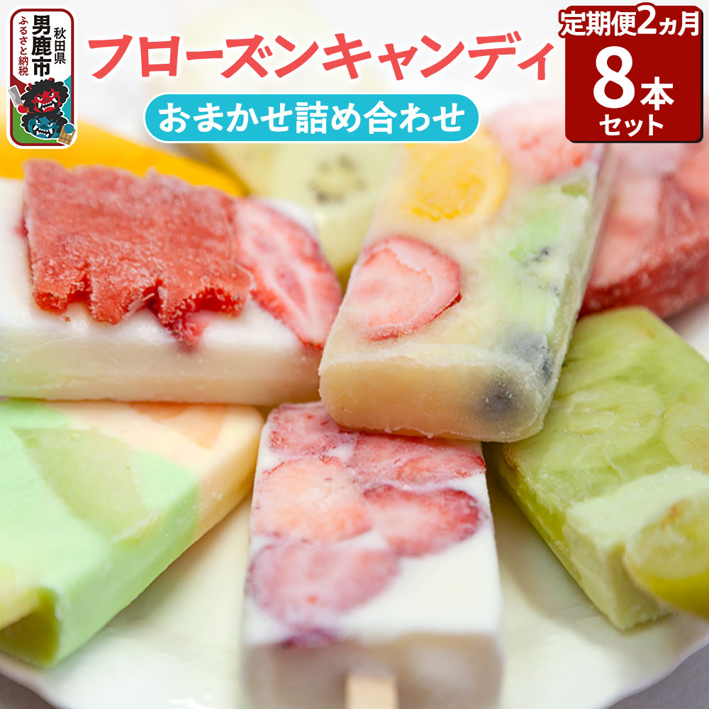果物や季節の素材や秋田県や男鹿市の特産品をアイスにしました。パティシエが一本一本手作りした、ケーキ屋が作る氷菓の詰合せセットです。■ 秋田県 男鹿市 ■ 【定期便2ヶ月】フローズンキャンディ おまかせ詰め合わせ...