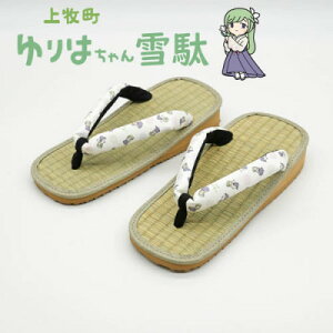 お礼品の特徴 上牧町PRキャラクター、雪駄を履いてお散歩好きの「ゆりはちゃん」の柄入り鼻緒の畳草履です。天板には畳を使用し、畳の気持ちの良