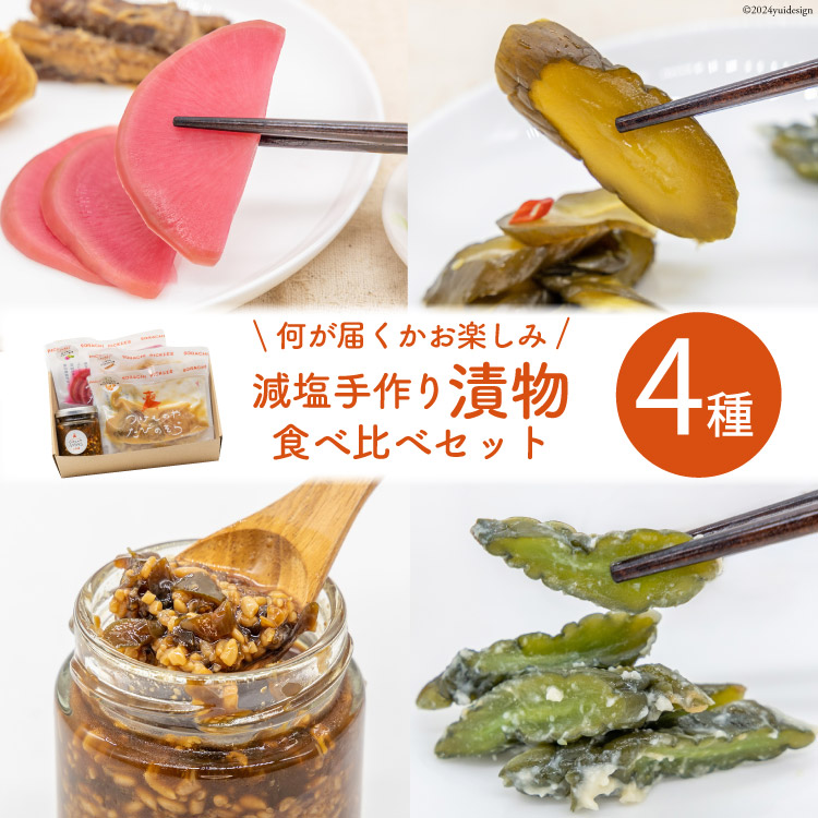 何が届くか楽しみにお待ちください♪ 無添加 減塩 手作り 漬物 4種 食べ比べ セット [たびのそら 北海道 砂川市 12260516]