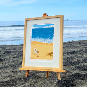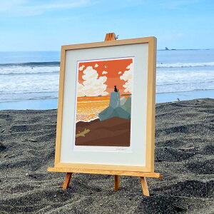 『湘南ランドスケープ04:渚の遭遇』(小:八つ切サイズ) 湘南・茅ヶ崎で描く、海を感じるイラストアート『ジークレーアートフレーム SL-04』(小:八つ切)