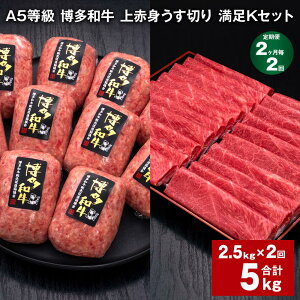 【ふるさと納税】【定期便】【2ヶ月毎2回】A5等級 博多和牛 上赤身うす切り 満足Kセット 計5kg(2.5kg×2回)薄切り ハンバーグ 牛肉 肉 惣菜 セット 詰め合わせ 冷凍...