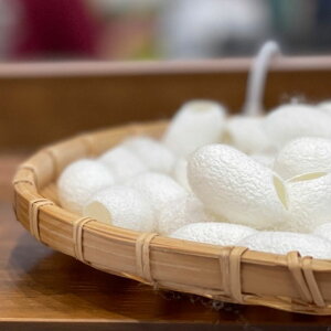 防虫剤・防腐剤不使用 福島市産天然まゆ玉です。 工房おりをりは、福島市伝統の素材「絹」に着目し、養蚕から製品化までを一貫して行うことで技術と文化の継承に取り組み、自然素材の糸紡ぎ・草木染め・織物・羊毛クラフトなどの作品