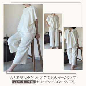【ふるさと納税】生地が選べる!人と環境にやさしい天然素材のルームウエア(半袖ブラウス+ストレートパンツ) ダブルガーゼorシャンブレー [ルームウェア 部屋着 パジャマ 天然素材 ...