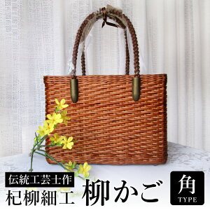 【兵庫県豊岡市】かごバッグ 柳かご(角) / 籠バッグ 豊岡 杞柳細工 伝統工芸士作 伝統工芸品 柳染め かご バッグ カバン 自家栽培 柳 天然素材 高級 おしゃれ 和テイスト ...