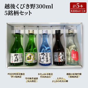 名称越後くびき野300ミリリットル5銘柄セット内容量かたふね本醸造(竹田酒造店)、吟田川特別本醸造(世々菊酒造)、雪中梅普通酒(丸山酒造)、大辛口(よしかわ杜氏の郷)、越路の紅梅吟醸(頚城酒造) 各銘柄300ミリリットル小瓶。