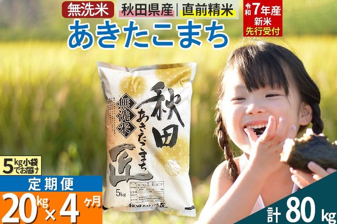 【秋田県北秋田市】※令和7年産 新米予約※《定期便12ヶ月》秋田県産 あきたこまち 20kg【無洗米】(5kg小分け袋) 2025年産 お届け時期選べる お届け周期調整可能 隔月に...