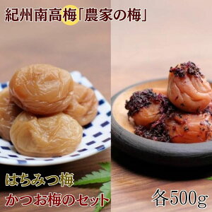 【ふるさと納税】紀州南高梅「農家の梅」はちみつ梅(塩分約3%)※レモンパウダー入り・紀州南高梅かつお梅(塩分約9%)セット 各500g / 田辺市 紀州南高梅 南高梅 梅干し 梅干...