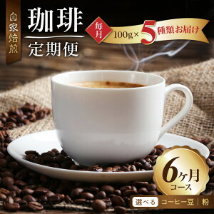 【ふるさと納税】定期便 6ヶ月 コーヒー 選べる 豆 粉 コース 毎月 500g 100g × 5種 × 6回 合計 3kg 飲み比べ セット 世界の生産地別のコーヒーが届く 産地...