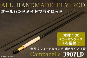 ※返礼品の送付は、岩手県紫波町外にお住まいの方に限らせていただきます。 製品仕様 名称 オールハンドメイドフライロッド Campanella3907LD 容量 ・ロッド本体 1本(全長9フィート0インチ 適合ライン7番) ・カーボンケ...