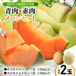 【ふるさと納税】【先行予約】 三里浜砂丘地産「ゆうかメロン」1玉:1.5kg以上 (青肉系メロン) と マルセイユメロン 1玉:1.3kg以上 (赤肉メロン) セット 【2026年...