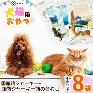 【ふるさと納税】国産鶏と鹿肉ジャーキー詰め合わせ(8袋)国産鶏むね肉・鶏ささみ・鹿肉 3種|ジャーキー 鶏むね肉 ささみ 鹿肉 詰め合わせ タンパク質 低脂肪 セット 犬 猫 満足...