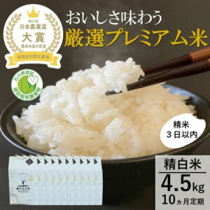 お米のプロが一粒、ひとつぶ愛情を注いで作った本当においしいお米です。この機会に一度ご賞味ください。 【毎月定期便】【日本農業賞大賞】厳選プレミアム米4.5kg精白米(特別栽培米コシヒカリ)全3回