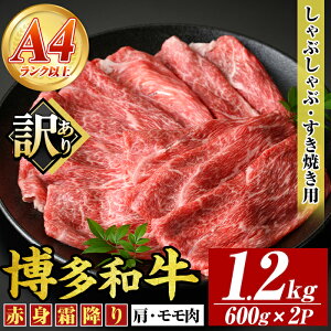 【ふるさと納税】<訳あり>【A4〜A5】博多和牛赤身霜降りしゃぶしゃぶすき焼き用(肩・モモ)(計1.2kg・600g×2P) 国産 九州産 福岡県産 牛肉 和牛 黒毛和牛 すきやき...