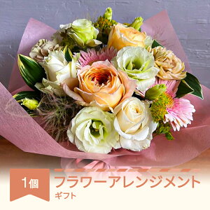 名称:フラワーアレンジメントMサイズ 季節のお花を取り合わせたフラワーアレンジメント(120サイズ)です。 日々の生活に癒しと彩りを添えるお花を! ※7月?9月の場合は気候の関係上、 生花からドライフラワーになる作品をお送りする予