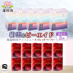 【ふるさと納税】頒布会2回 新保湿ティッシュ 絹雲 ボックスティッシュ 130組( 3枚重ね )×15箱 河野製紙 ピーエイド シルク40ロール やわらかい まとめ買い 備蓄 日用...