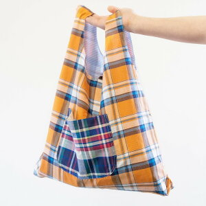 先染織物による色彩豊かなチェック柄、抗ウイルス&撥水加工により衛生的、広口で収納力のあるエコバッグ 高機能播州織エコバッグ「with Rubco」 カラー:グレンチェック ブルー