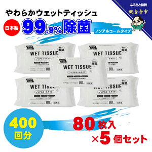 【ふるさと納税】【99.9% 除菌】ノンアルコール ウエットティッシュ 80枚入×5個セット(400枚) 無香料 コンパクト お手拭き 清潔 お届け:ご寄附(入金)確認後、2週間で...