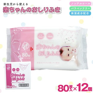 【ふるさと納税】新生児からの使用可能 赤ちゃんおしりふき 80枚入×12個セット(960枚)ノンアルコール・パラベンフリー・保湿成分モモの葉エキス配合 お届け:ご寄附(入金)確認後...