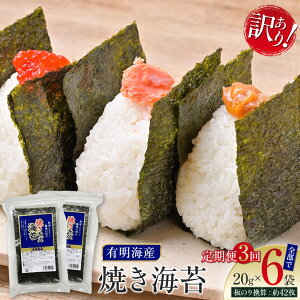 福岡産海産物 有明産乾物 ご飯のおとも 焼海苔 やきのり ごはんのおとも 海産物 乾物 【全3回定期便】福岡有明のり 訳あり! 焼き海苔 20g×6袋 <木村食品> 那珂川市 [GFW011]福岡県那珂川市27000魚介...
