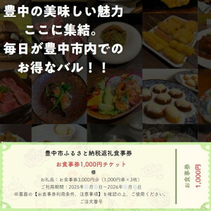 豊中市内でチケットに加盟している飲食店にてご利用いただけるチケットです。 幅広い飲食店の中からシーンに合わせて選んでいただき、ご使用いただけます。 複数店舗での使い分けも可能です。(A店で1,000円分...