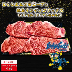 【徳島県阿波市】国産 牛肉 ロース ステーキ 4枚 徳島インディゴソックス 選手 サイン色紙 セット 野球 四国アイランドリーグ プロ野球 阿波牛 一貫牛 とくしま 三ツ星 ビーフ...