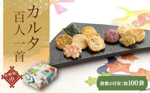 【ふるさと納税】 カルタ百人一首 化粧箱(中)(袋数の目安:約100袋) 【ふるさと納税 京都 和菓子 老舗 せんべい おかき あられ 煎餅 おやつ カルタ 百人一首 京都府 長岡...