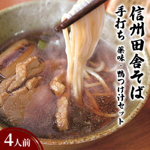 【ふるさと納税】【年越そば】信州田舎そば(手打ち)4人前薬味鴨つけ汁 冷凍便 ※オンライン決済限定 麺類 生そば 国産 素材 香り 粗挽き 二八そば 鰹節 昆布 煮干 旨み 出汁 ...