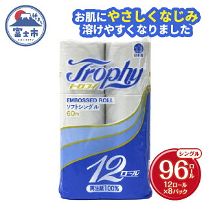 【ふるさと納税】 選べる厚さ/ロール数 トイレットペーパー シングル/ダブル 12〜96ロール (12個 × 1/4/8パック) トロフィー 日用品 長持ち 大容量 エコ 防災 備...