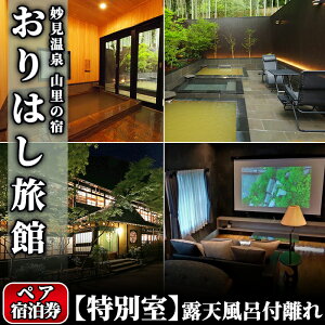 妙見温泉の中でも最も歴史のある温泉旅館で使えるペア宿泊券です♪【特別室】「樟庵」or「竹林」 妙見温泉おりはし旅館 【特別室】露天風呂付離れペア宿泊券【おりはし旅館】 K-116