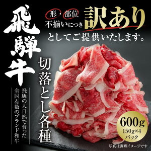 【ふるさと納税】訳あり 飛騨牛 切落とし 600g(150g×4パック) 冷凍真空パック | 肉 お肉 切り落とし すき焼き すきやき 黒毛和牛 和牛 個包装 小分け 人気 おすす...