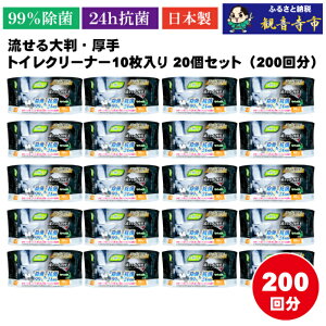 【ふるさと納税】【除菌99%&抗菌24時間】流せる大判・厚手・トイレクリーナー10枚入り×20個セット(200枚)お掃除がラクラク お届け:ご寄附(入金)確認後、2週間で順次出荷い...