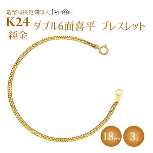 【ふるさと納税】ブレスレット 金 K24 ダブル六面喜平ブレスレット 18cm-3g 造幣局検定マーク入り|純金 ゴールド K24 日本製 アクセサリー ブレスレット 腕輪 レディ...