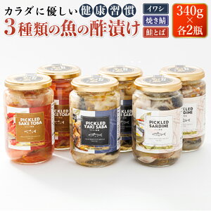 【北海道釧路町】3種類の 魚の 酢漬け 340g×2コ 計6コ | ピクルス風のお酢に漬け込む 釧之助の ピクルド イワシの 酢漬け ピクルドサーディン 鰯 酢漬 焼サバの ピクル...