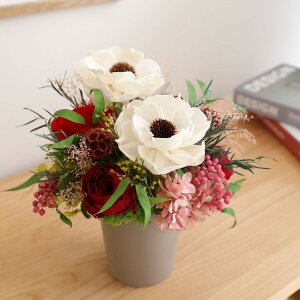 商品詳細 名称 プリザーブドフラワー フルール 内容 大きさ:高さ 約22cm × 横幅 約22cm 重量:約410g 花器:陶器 素材 アネモネ(ソーラーフラワー) ローズ、スカビオーサ、アジサイ、ペッパーベリー、イタリアンルスカス...