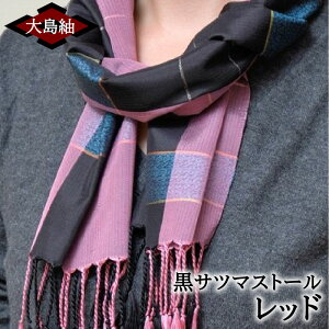 「大島紬ストール」彩のある絹糸をバランスよく配分。軽くて暖かくソフトな仕上がり! 黒サツマストール・レッド K040-005